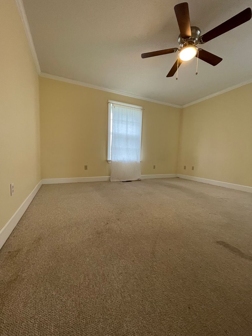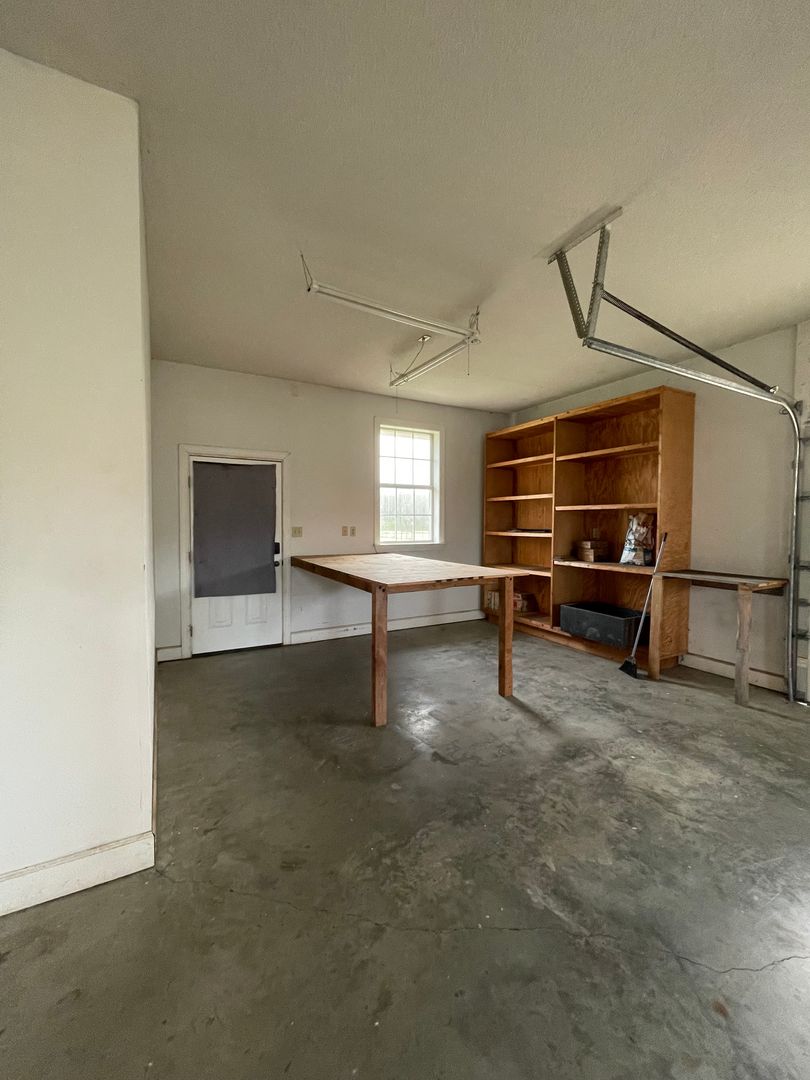 Here’s your chance to lease this spacious home on 2 acres! Great layout with three bedrooms and two and a half baths. Kitchen is ready for you to enjoy cooking with gas stove, microwave, dishwasher, fridge, and big pantry. Sink looks out to the back yard, and kitchen is open to the dining area. Living room has a built-in book case. Great size bedrooms with walk-in closets! You’ll love the work space in the garage. Just off the garage is a laundry room with built-in desk and separate half bath. Washer and dryer stay! Lots of natural light pours into the windows throughout the home. Lots of extra storage. Yard is fully fenced. Ready for your rocking chair on the covered front porch!